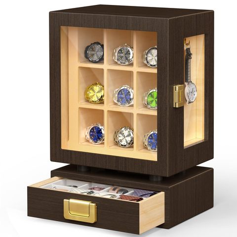 Custom in legno scatola portaoggetti massello noce orologio vetrina con cassetto di lusso scatola di orologi Organizer per gli uomini