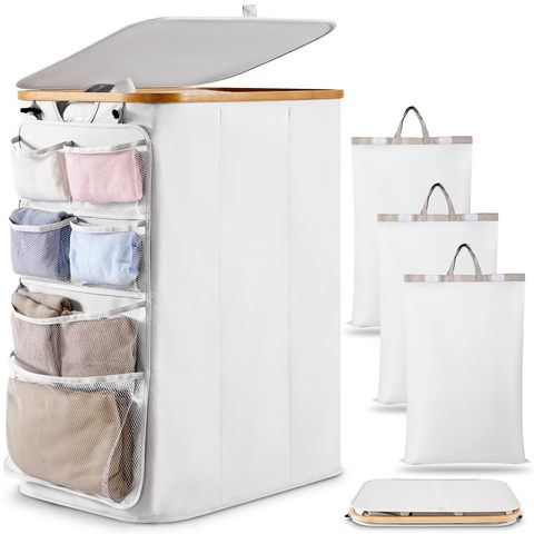 Grande cesto della biancheria in bambù pieghevole con 3 scomparti con coperchio per bambini in bambù cesto della biancheria